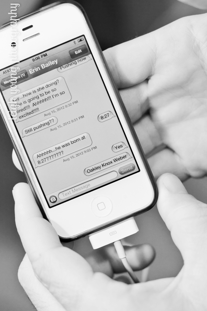 After about 40 hours of labor, I am proud to introduce our son: Oakley Knox Weber! We are so in love and it has only been a week! Oakley was born at 8:27 pm on August 15, 2012 (10 days late MR!). Ryland said he is getting his first spankin’ for being late! He was 20 inches long and has super long fingers and feet, but he swims in all of the newborn sized clothes!